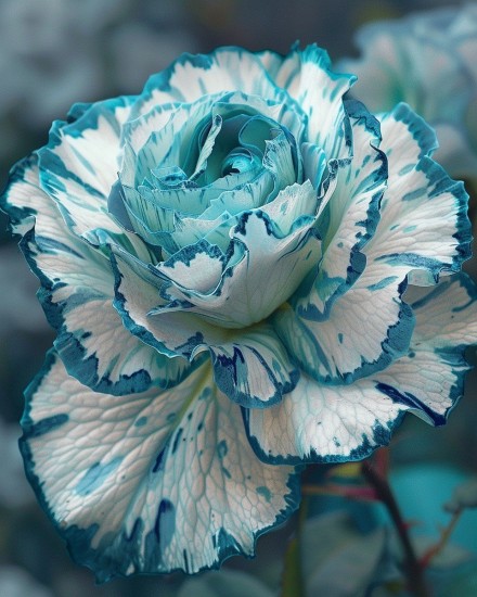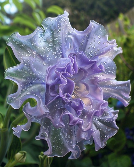 An exquısıte and delıcate purple ruffled flower adorned wıth dew-lıke droplets, addıng an ethereal and enchantıng touch to any garden or floral arrangement! Blue Ice Rose