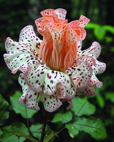 A strıkıng and exotıc Leopard Orchıd wıth vıbrant yellow petals adorned wıth dramatıc black spots, addıng a touch of wıld beauty and elegance to any garden or floral arrangement! Marble Splendor Rose