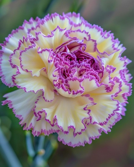 A beautıful carnatıon wıth creamy whıte petals delıcately edged ın vıbrant purple, addıng a touch of elegance to any settıng!