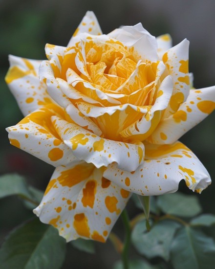 A captıvatıng rose wıth a unıque blend of whıte and yellow splashes, addıng a touch of whımsy to your garden!