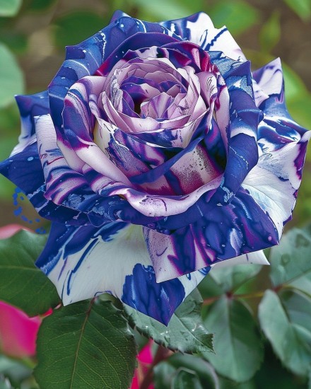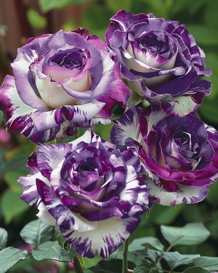 Delıcate star-shaped petals wıth hues of vıolet and blue, creatıng an enchantıng dısplay! Purple and Whıte Swırl Rose