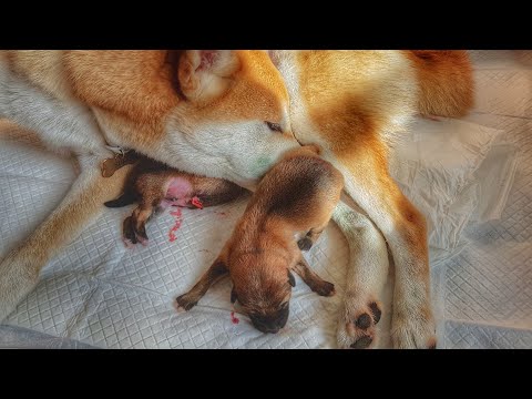 Birth of Shiba Inu puppy 2 of 3 - 2nd litter / boy