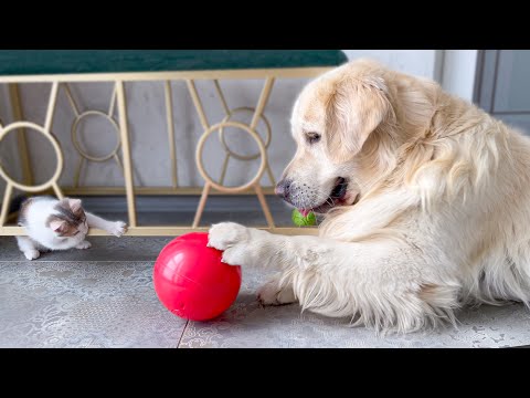 Golden Retriever Sleeps with a Kitten for the First Time!