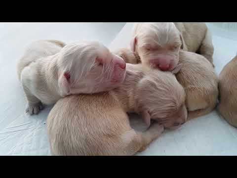 Adorable Golden Retriever Reaction to 5 Puppies!